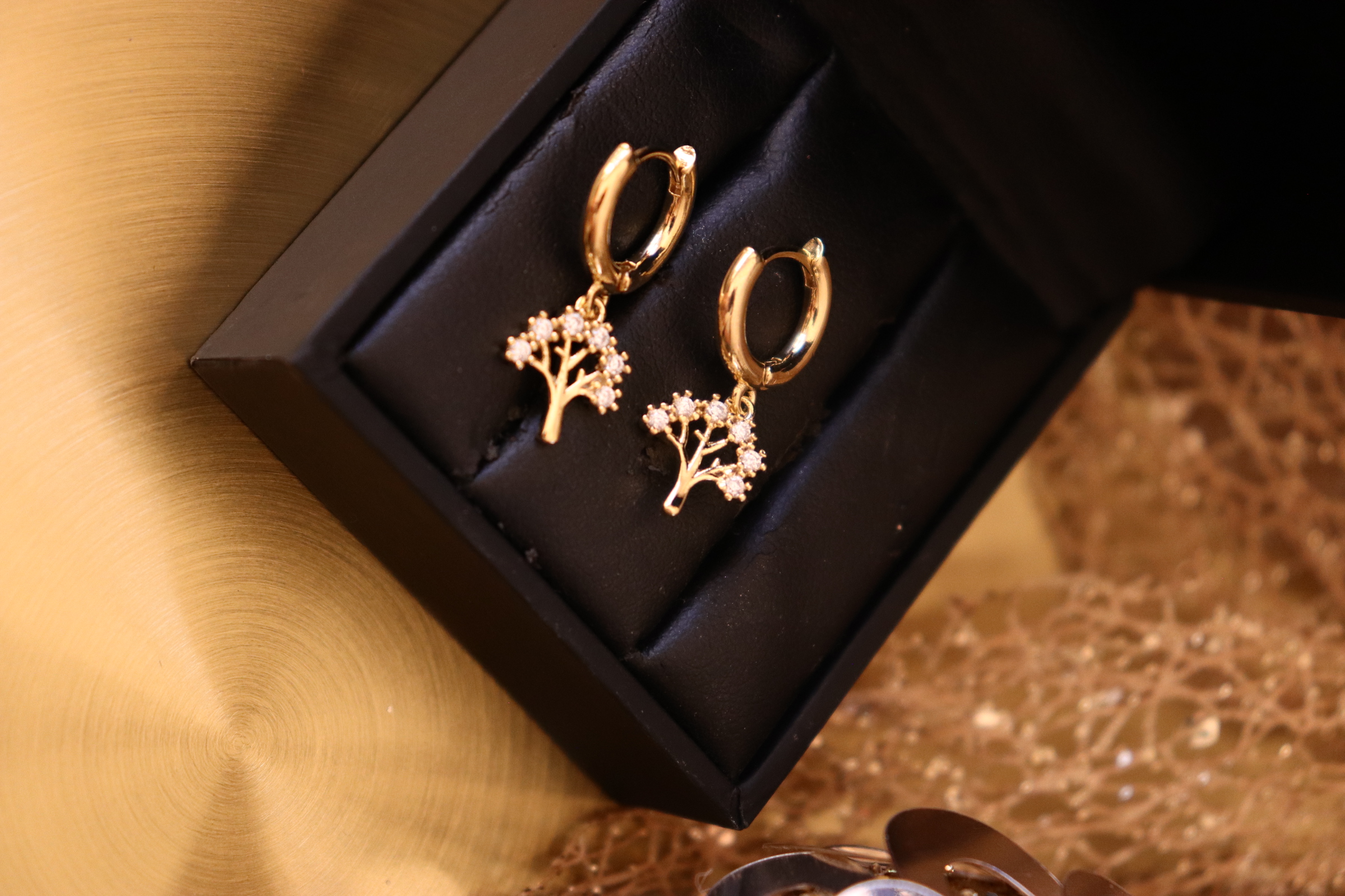 Brinco de Argola com Pingente Árvore da Vida Cravejada – Banhado a Ouro 18k