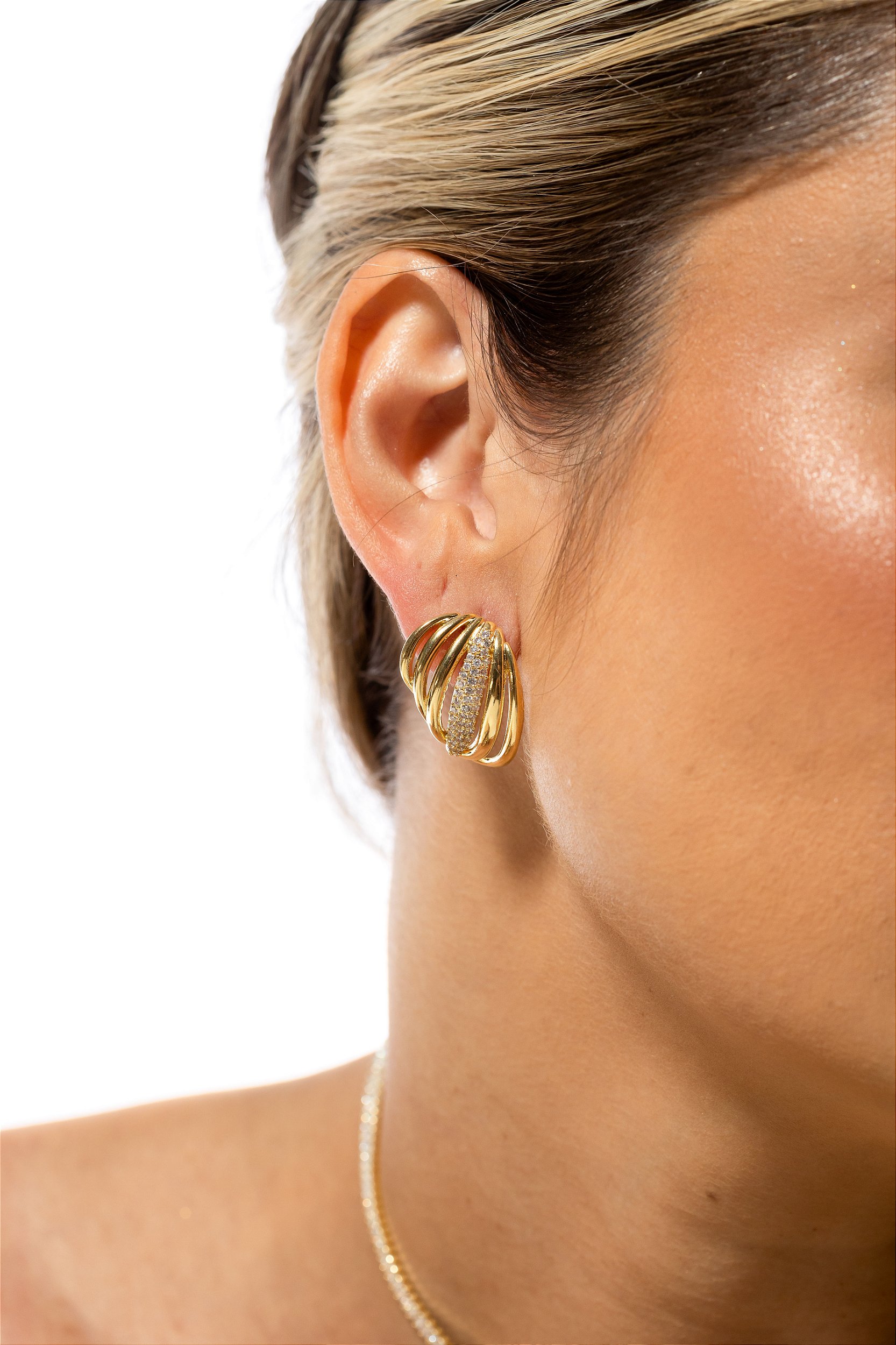 Este brinco é confeccionado em metal de alta qualidade, revestido com banho de ouro 18 quilates que oferece proteção contra oxidação e desgaste. Seu formato oval e a aplicação de zirconias promovem um visual tridimensional e elegante, ideal para complementar seu look diário ou eventos especiais.