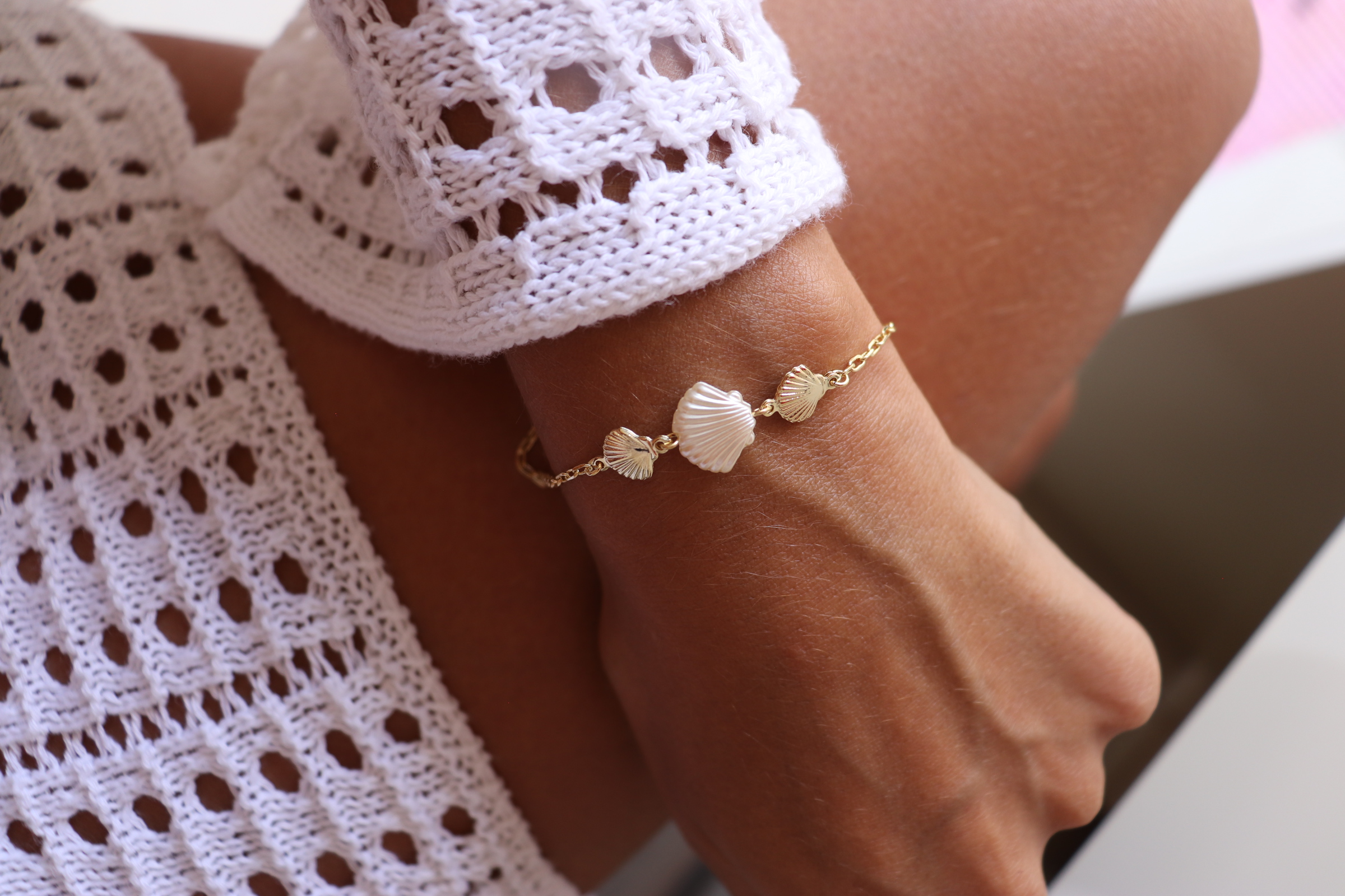 Descubra a elegância da Pulseira de Conhas banhada a ouro 18k, uma peça delicada que realça qualquer visual com muito estilo e sofisticação. Sua corrente fina com pingentes em formato de conchas traz um toque de brilho e personalidade para o seu dia a dia. A pulseira é produzida com banho dourado de alta qualidade que garante resistência e durabilidade, mantendo seu brilho por muito mais tempo.