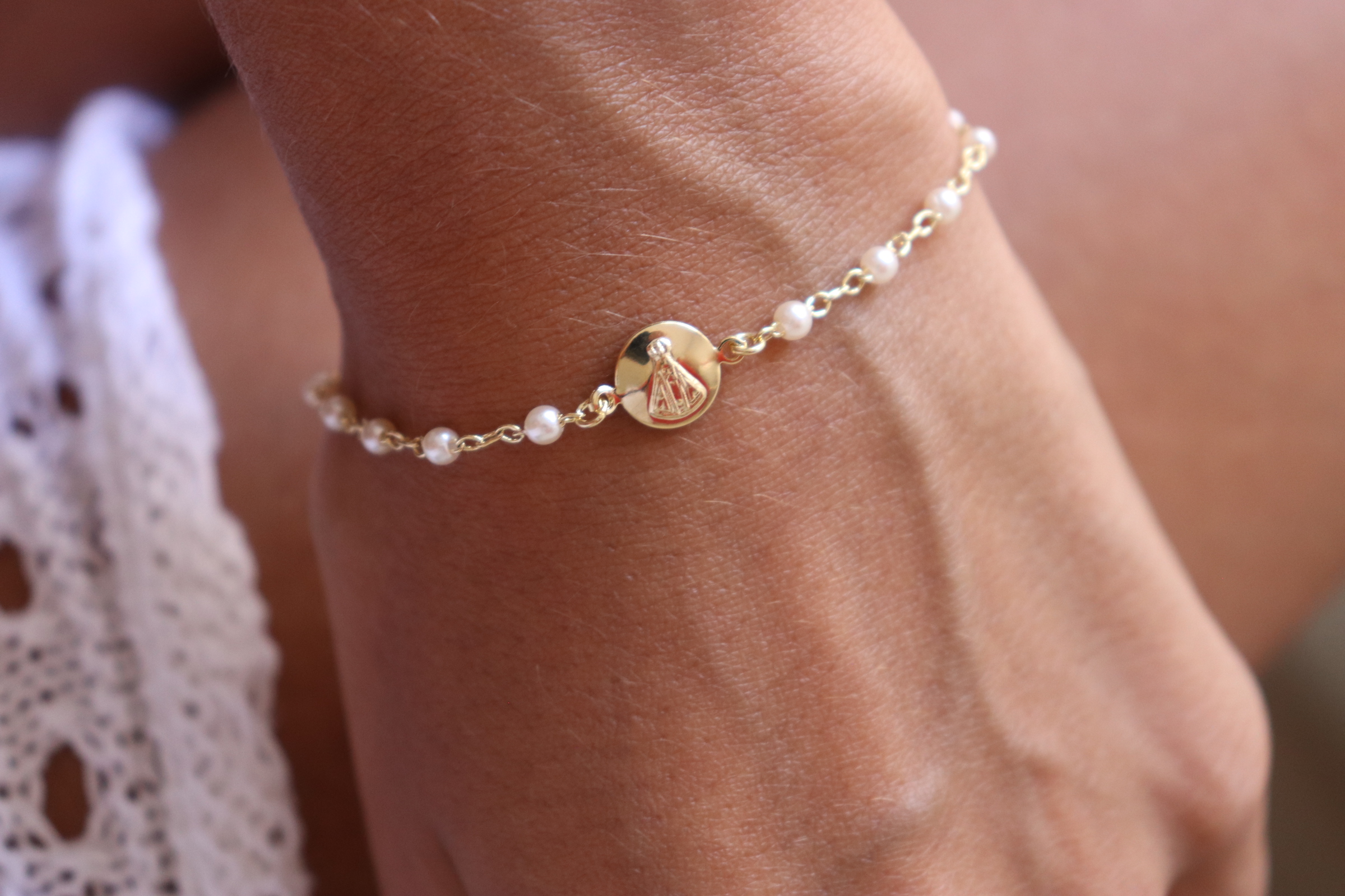 A Pulseira Ns. Senhora é uma peça sofisticada banhada a ouro 18k, oferecendo um brilho intenso e durabilidade superior. Seu design delicado com pequenas pérolas fortalece o visual elegante, ideal para quem busca um acessório versátil que complementa diversos estilos. A pulseira proporciona conforto ao vestir, graças ao seu acabamento cuidadoso e ajuste perfeito para o pulso, valorizando qualquer look com um toque de requinte e charme.